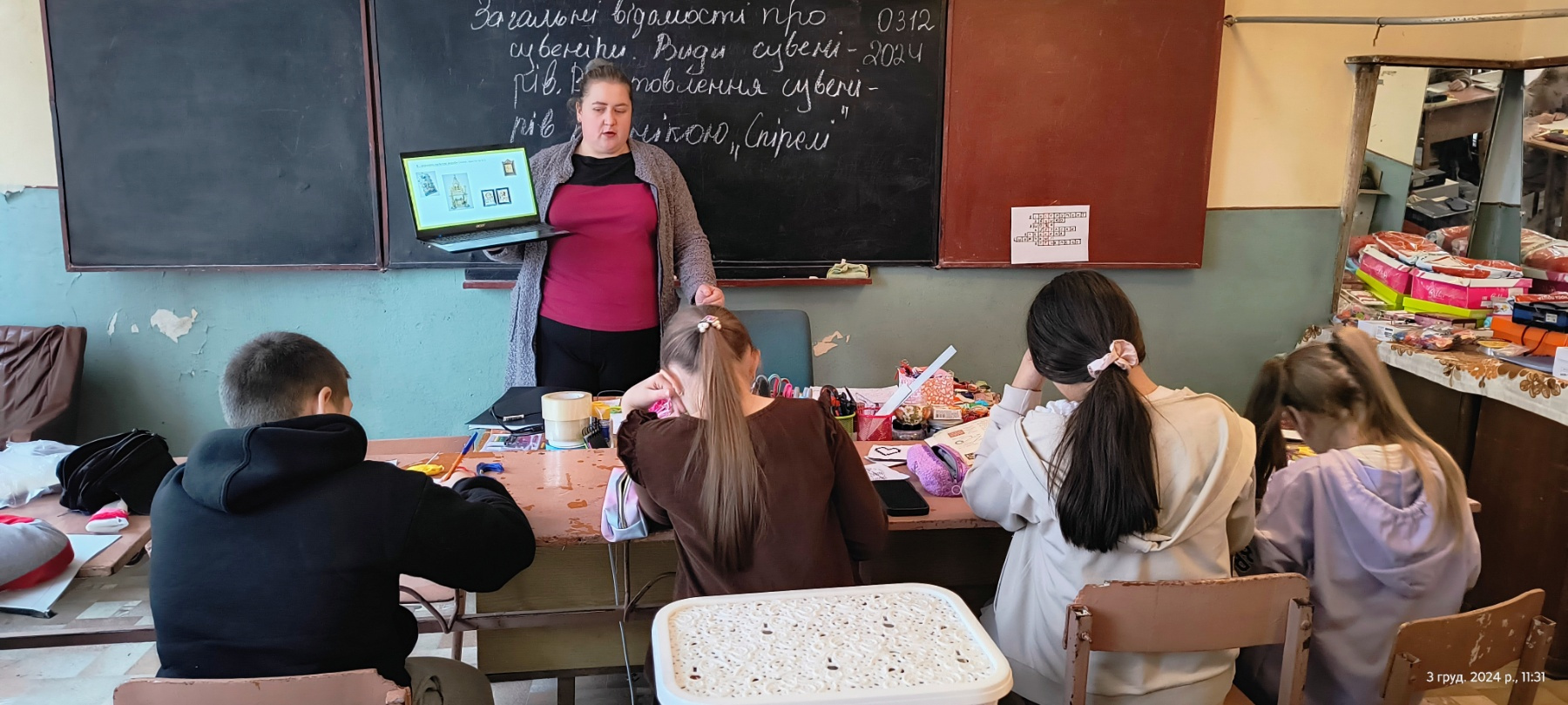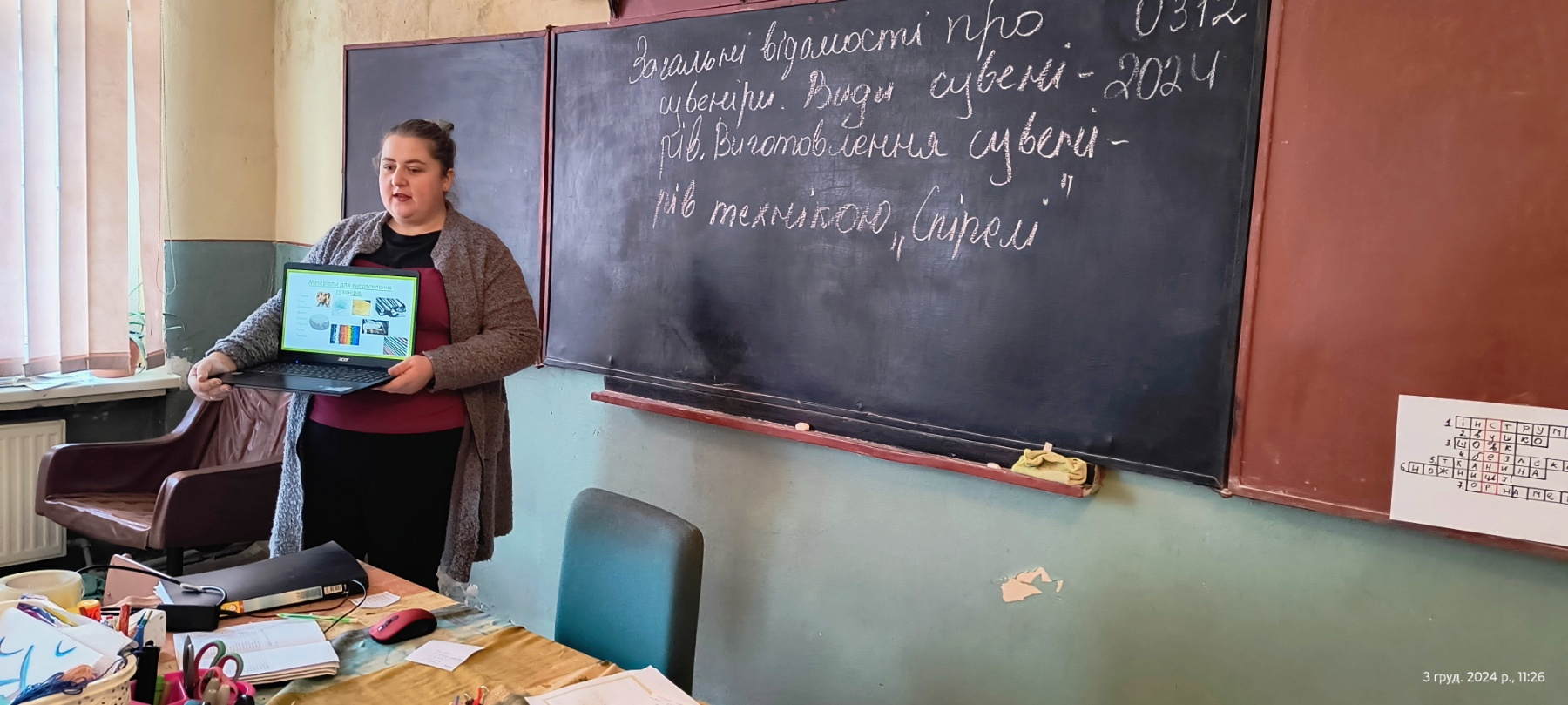 03 грудня вчитель технологій Жидик Н.А. провела відкритий урок на тему: “Загальні відомості про сувеніри. Види сувенірів (за призначенням, за матеріалом). Виготовлення сувеніру технікою “Спірелі”.