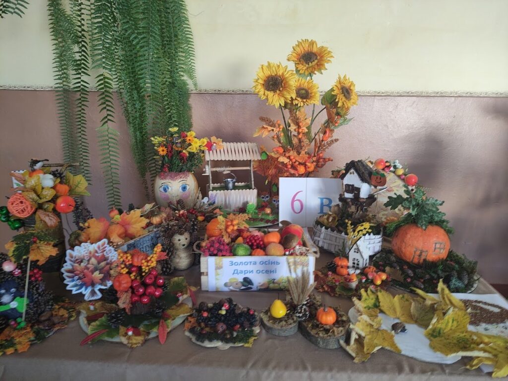 Нікого не залишили байдужим чудові букети з елементами художнього оформлення, квітково-фруктові та овочеві композиції, прикрашені природним матеріалом, обереги, віночки, малюнки, стіннівки, фотозони. Неймовірні за своєю красою та оригінальністю осінні композиції прикрасили коридори нашого закладу, подарувавши всім гарний настрій.