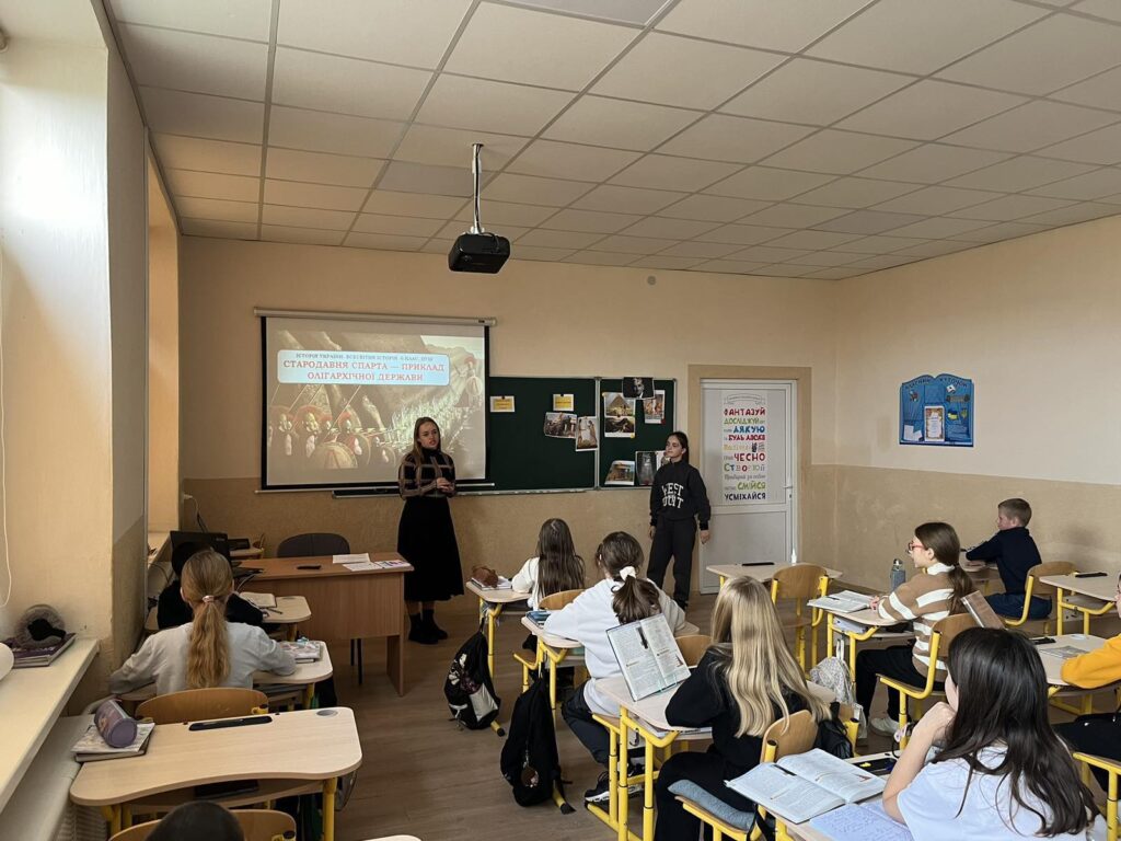 Також насиченою була програма вчителів історії. Бубряк К.В. провела відкритий урок у 6-Б класі на тему «Стародавня Спарта – приклад олігархічної держави» та відкритий захід у 5-А класі «Голодомор 1932-1933 років-геноцид українського народу». Кохан Ю.В. у 6-А класі провела цікавий урок на тему «Афіни – батьківщина демократії» та відкритий захід у 7-Б класі «Запали свічку пам’яті за жертвами Голодомору. Борись за Україну та підтримуй воїнів».