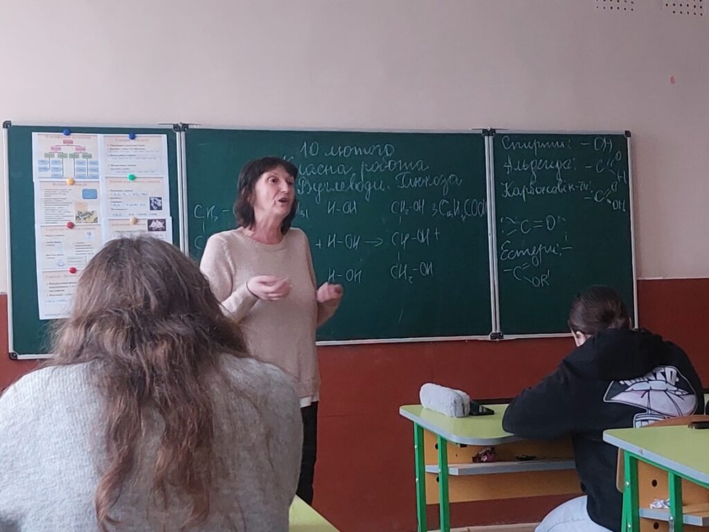 Вчителька хімії Соскіда Віра Миколаївна провела у 10-Б класі відкритий урок з хімії на тему: «Вуглеводи. Глюкоза». Урок пройшов у атмосфері зацікавленості, активної пізнавальної діяльності та живого спілкування. Вчителька вміло поєднала теоретичний матеріал із практичними завданнями, що дало змогу учням не лише засвоїти нові знання, а й усвідомити практичне значення теми.