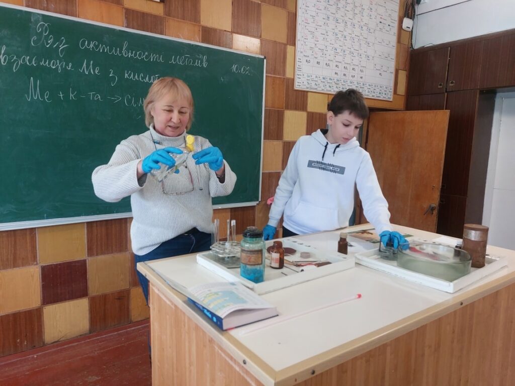 Особливу увагу було приділено тому, як ряд активності металів допомагає передбачити перебіг хімічних реакцій: які метали реагують активніше, які — менш активно, чому одні здатні витісняти інші з розчинів солей. Під час дослідів учні наочно переконалися в цьому, спостерігаючи, як один метал «витісняє» інший, змінюється колір розчину або утворюється осад. Такі моменти зробили урок справжнім видовищем науки.