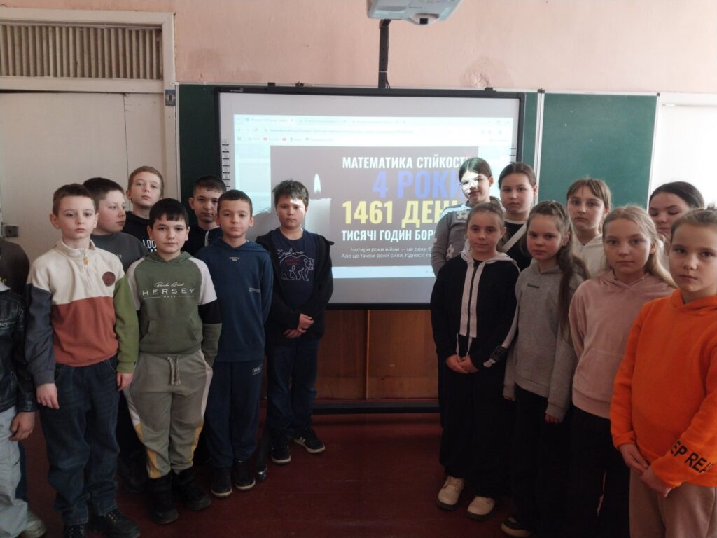 Класний керівник 5-А класу Турянчик М.М. провела інформаційну хвилинку з учнями на тему «Математична стійкість: 4 роки, 1461 день, тисячі годин незламної боротьби». Інформаційна хвилинка пройшла у форматі живого діалогу. П’ятикласники ділилися своїми думками про те, що для них означає «бути стійким», та вшанували пам’ять тих, хто щодня виборює наше право на майбутнє.