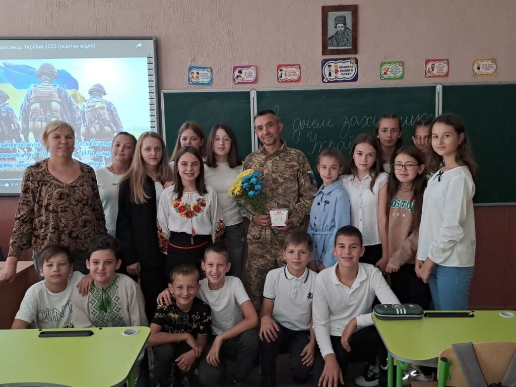 Також була організована зустріч з учасником бойових дій Пойдинцем Артемом Михайловичем, який розповів учням про страшну війну росії проти українців. Після змістовної розмови діти подякували воїну за наше мирне життя та можливість спокійно навчатися.
