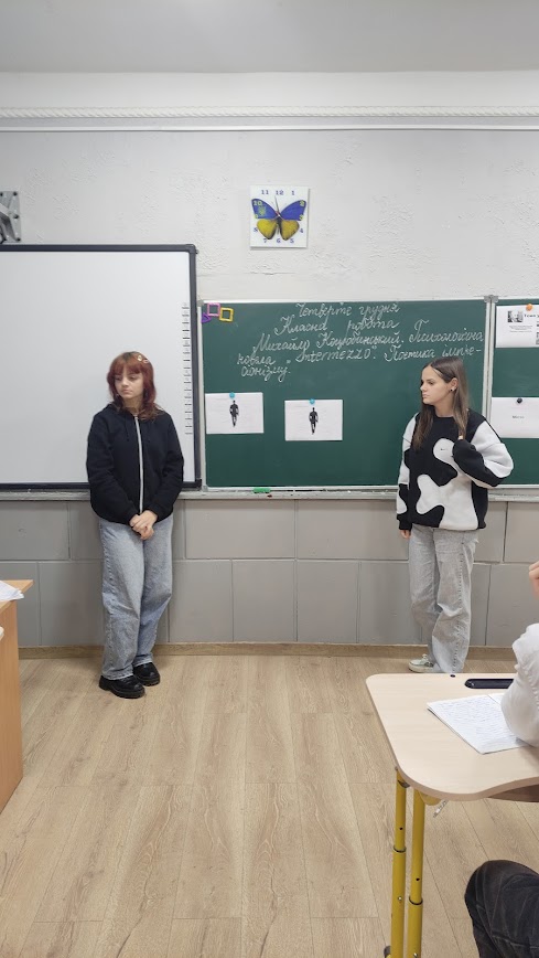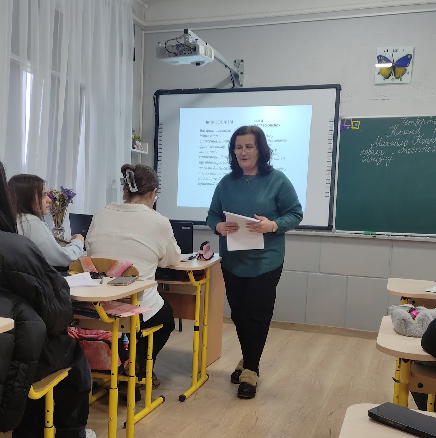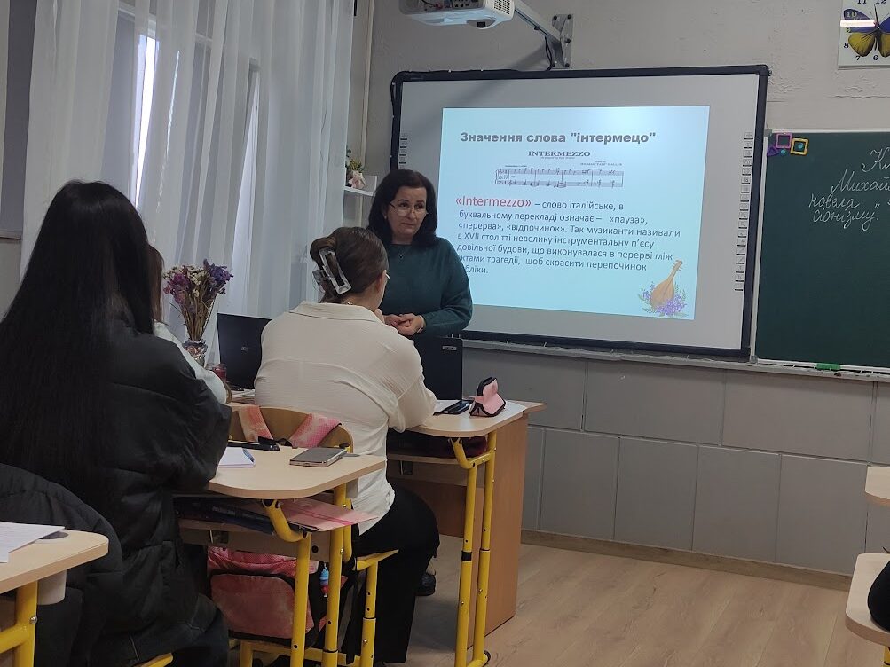 Під час відкритого уроку Вікторія Іванівна акцентувала увагу на тому, що «Intermezzo» – це літературна спроба подолати депресію через мистецтво й природу. Учні мали можливість дослідити, як особисті переживання митця трансформуються у художні образи та про те, що тема депресії робить твір надзвичайно актуальним і сьогодні, бо показує, що навіть у стані внутрішньої кризи можна знайти шлях до відновлення.