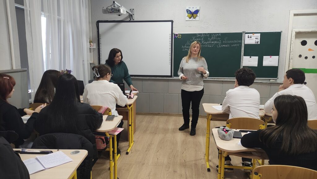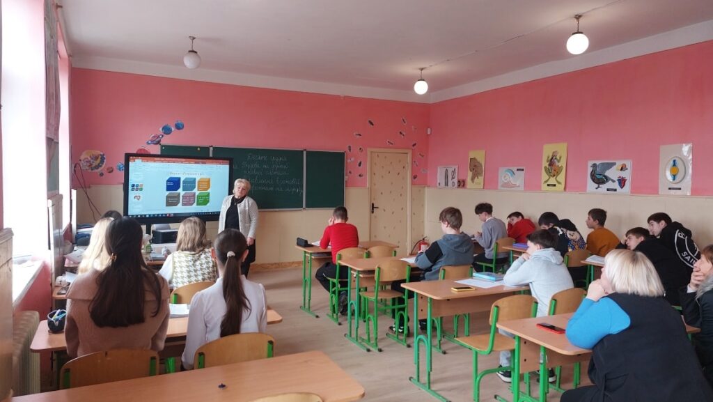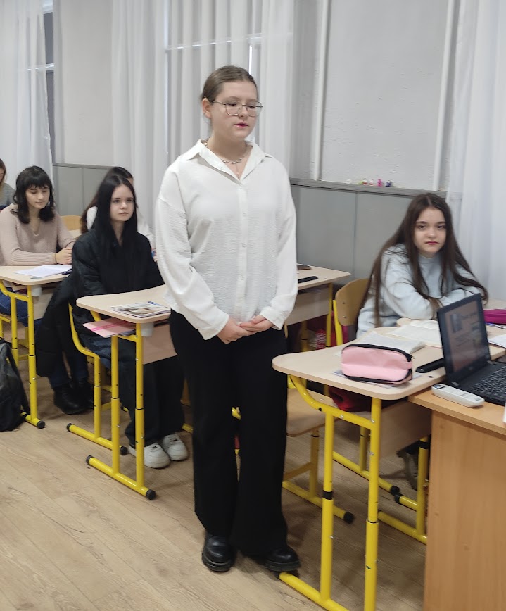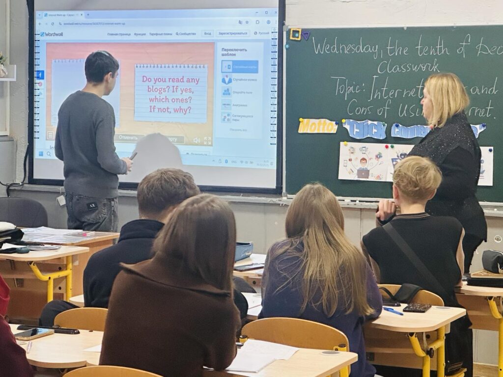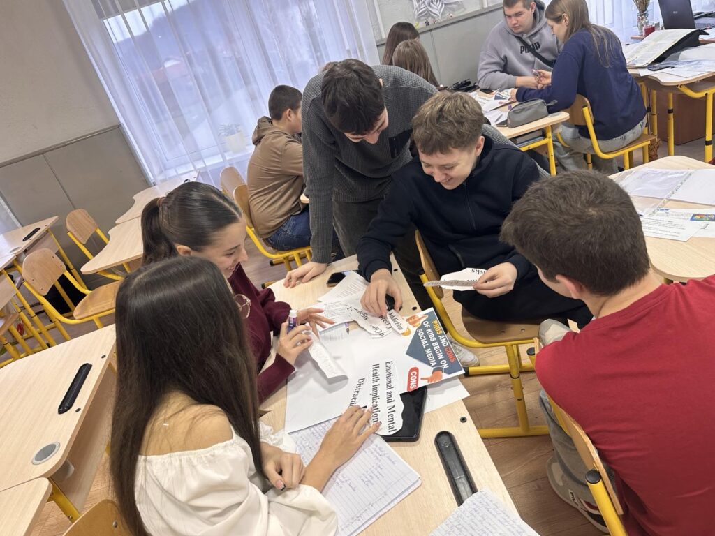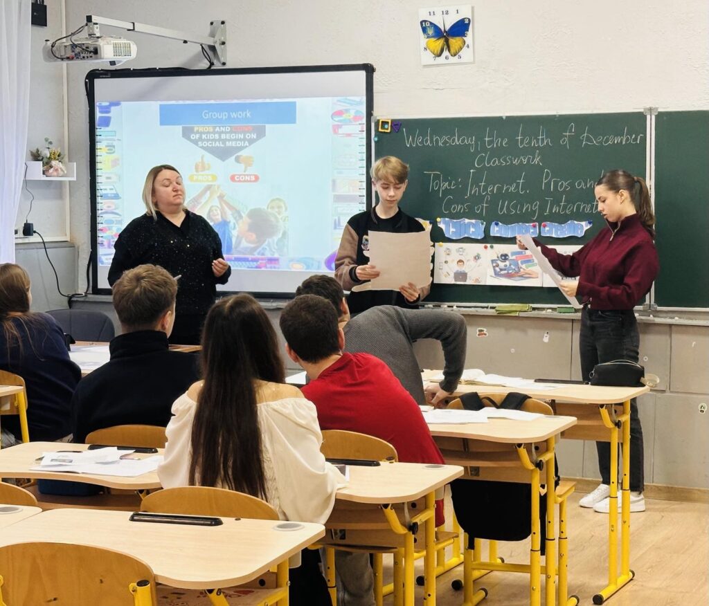 Учитель англійської мови Туряниця Алла Михайлівна провела відкритий урок у 10-А класі на тему: «Internet. Pros and Cons of using Internet». Девізом заняття стали слова: «Click, connect, create», які вдало відобразили сучасний підхід до навчання та активну взаємодію учнів із цифровим середовищем. Метою уроку було вдосконалювати навички аудіювання, говоріння, читання та письма, закріпити лексичний матеріал та вживання фразових дієслів. Також вести бесіду про переваги та недоліки користуванням Інтернетом. У ході проведення уроку вчитель використала інтерактивну дошку, що зробило виконання завдань цікавим та динамічним. Учні активно працювали над вправами, демонструючи високий рівень володіння іноземною мовою. У кінці заняття школярі об’єдналися у групи та створили постери, де відобразили власне бачення теми.