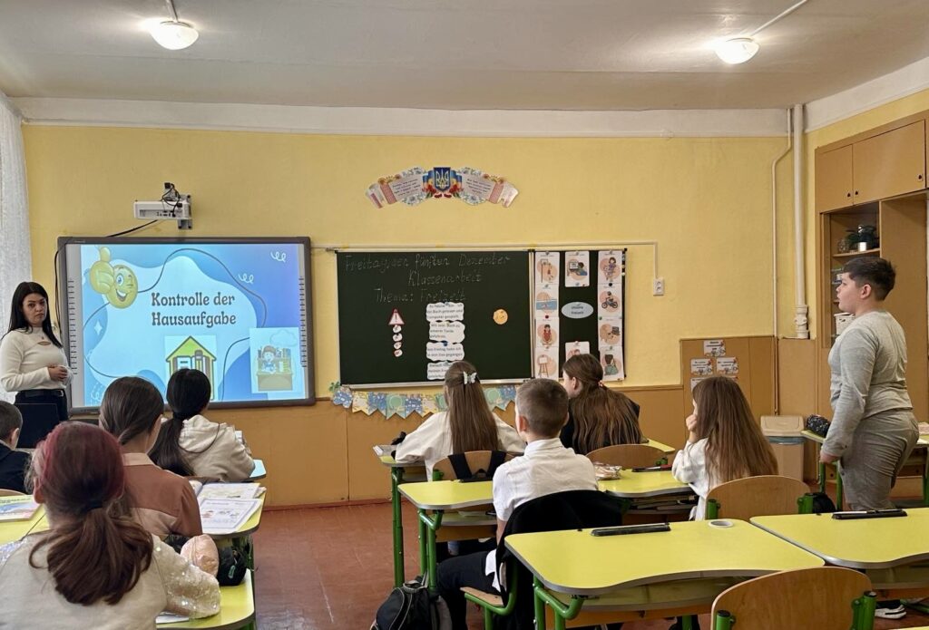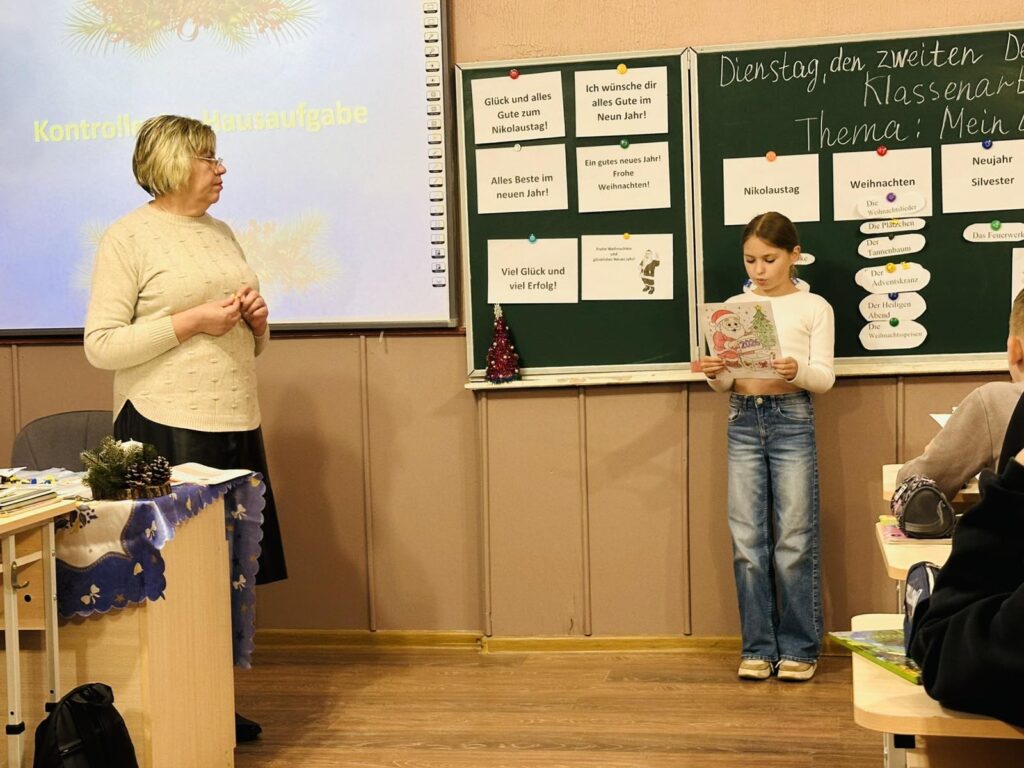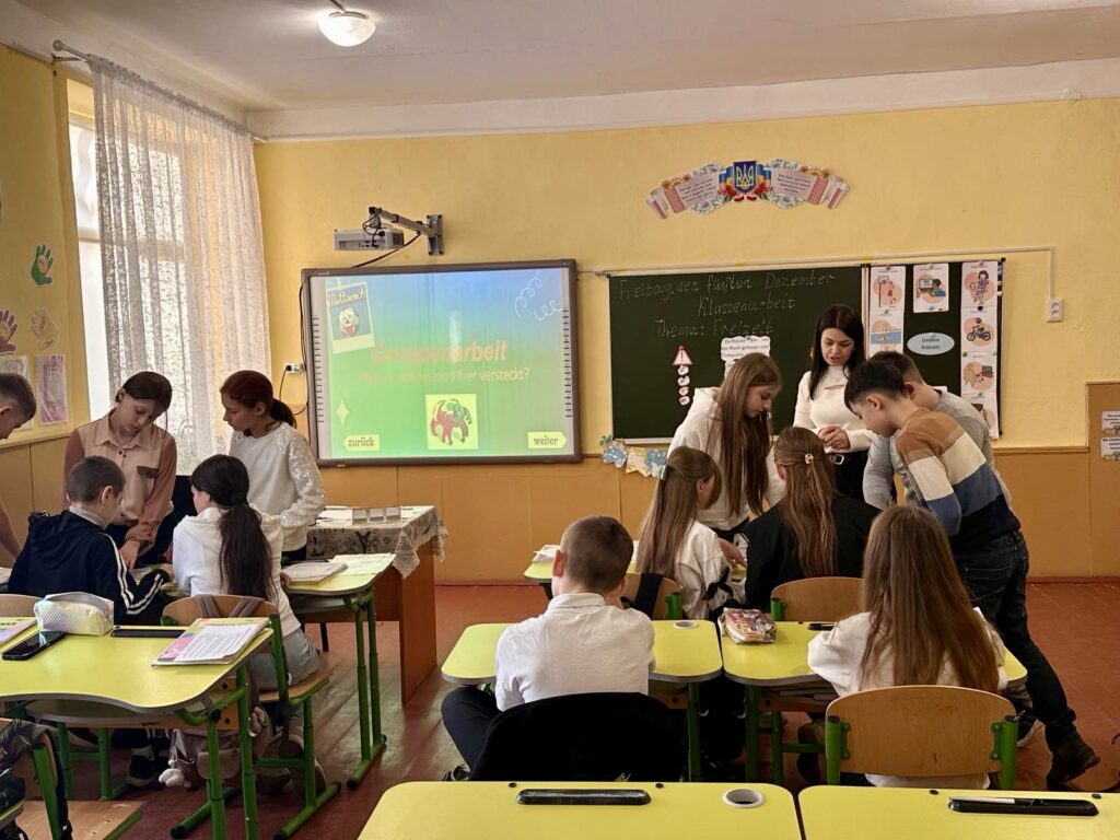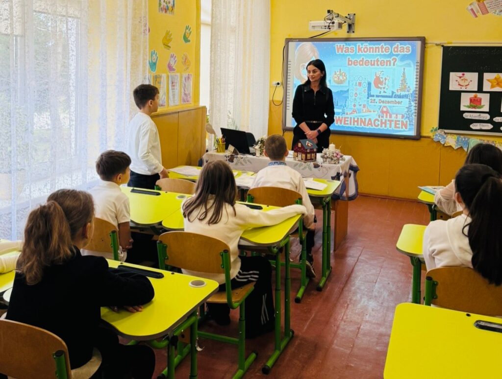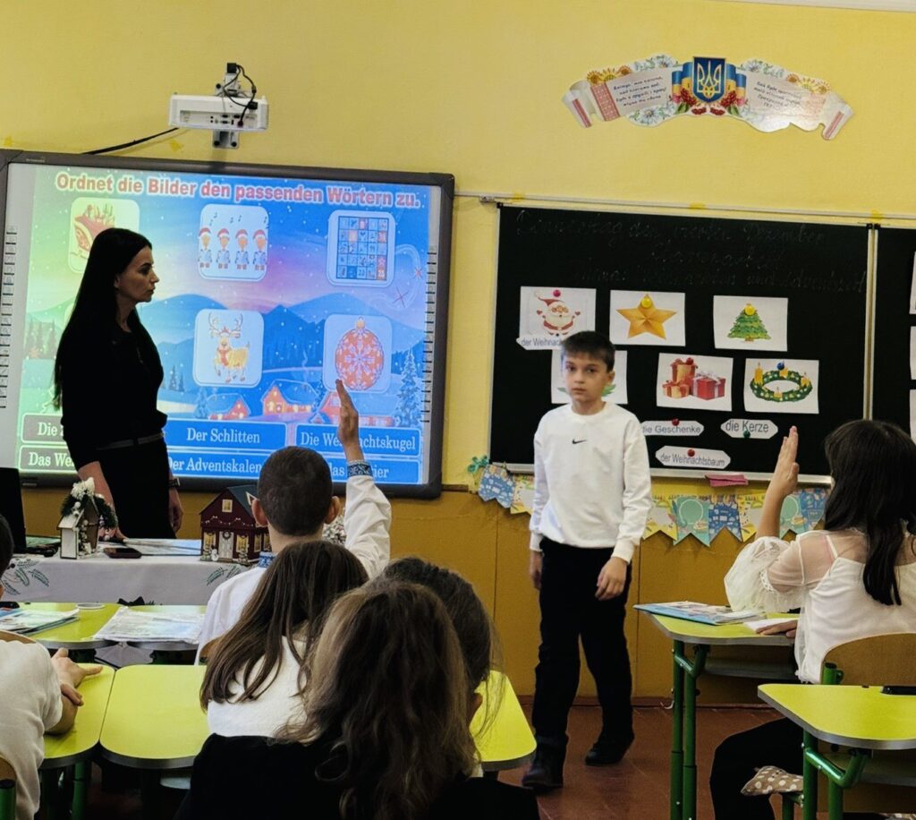 Учитель німецької мови Чинадіївського ЗЗСО І-ІІІ ступенів Молнар С.В провела показовий урок з учнями 6-А класу на тему” Feste und Bräuche” “Mein Lieblingsfest”. Учні представили свої розповіді з малюнками про найгарніші свята, які відначаємо взимку. З цікавими завданнями в ігровій формі учні показали свої знання і вміння. Передивились і зануритись в святкову атмосферу, а на підсумок уроку написали списки бажань до Святого Миколая і побажали один одному: ” Frohe Weihnachten und glückliches Neujahr”