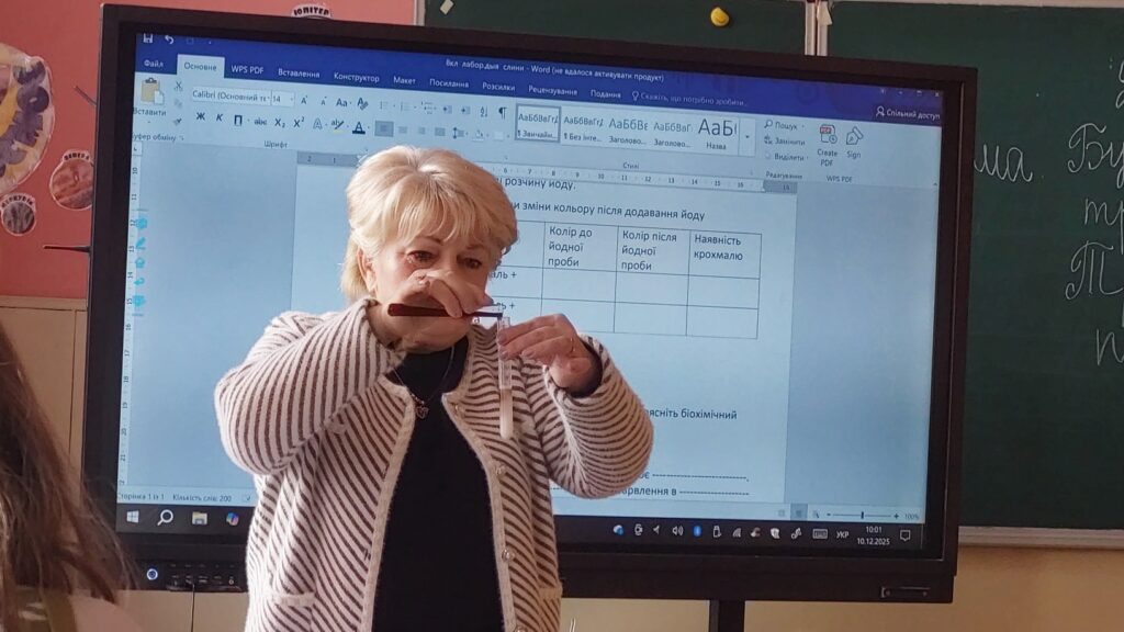 Особливо зацікавив учнів дослід, проведений під час уроку. У пробірки помістили слину та крохмаль — і школярі спостерігали, як під дією ферментів слини крохмаль починає розщеплюватися. Це дало можливість на практиці переконатися, що травлення розпочинається саме в роті, а ферменти відіграють важливу роль у хімічній обробці їжі.